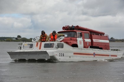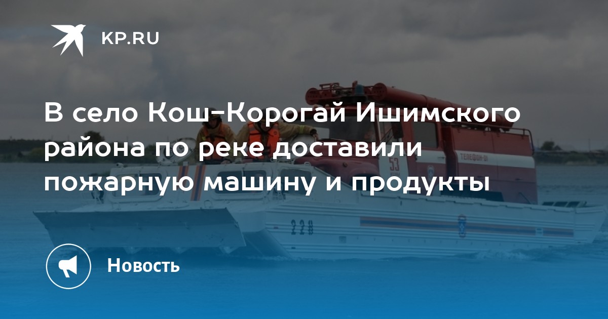 Пожарную машину по воде пришлось доставлять в изолированное паводком село Кош-Корогай в Ишимском районе. Автомобильное сообщение прервано из-за обрушения пролёта моста через реку Ишим, поэтому автоцистерну решено было доставить на плавающем транспортере.